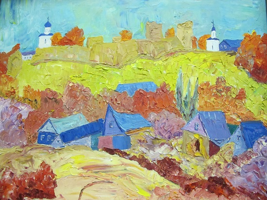 Landscapes and still life works of this St. Petersburg master are distinguished by the richness of colours and internal energy. Davydova’s picturesque language is laconic; in her works the balance of forms and colours dominates, giving the impression of integrity. In the past Lyudmila Davydova was a designer, a teacher of painting and drawing, and the author of experimental curricula.