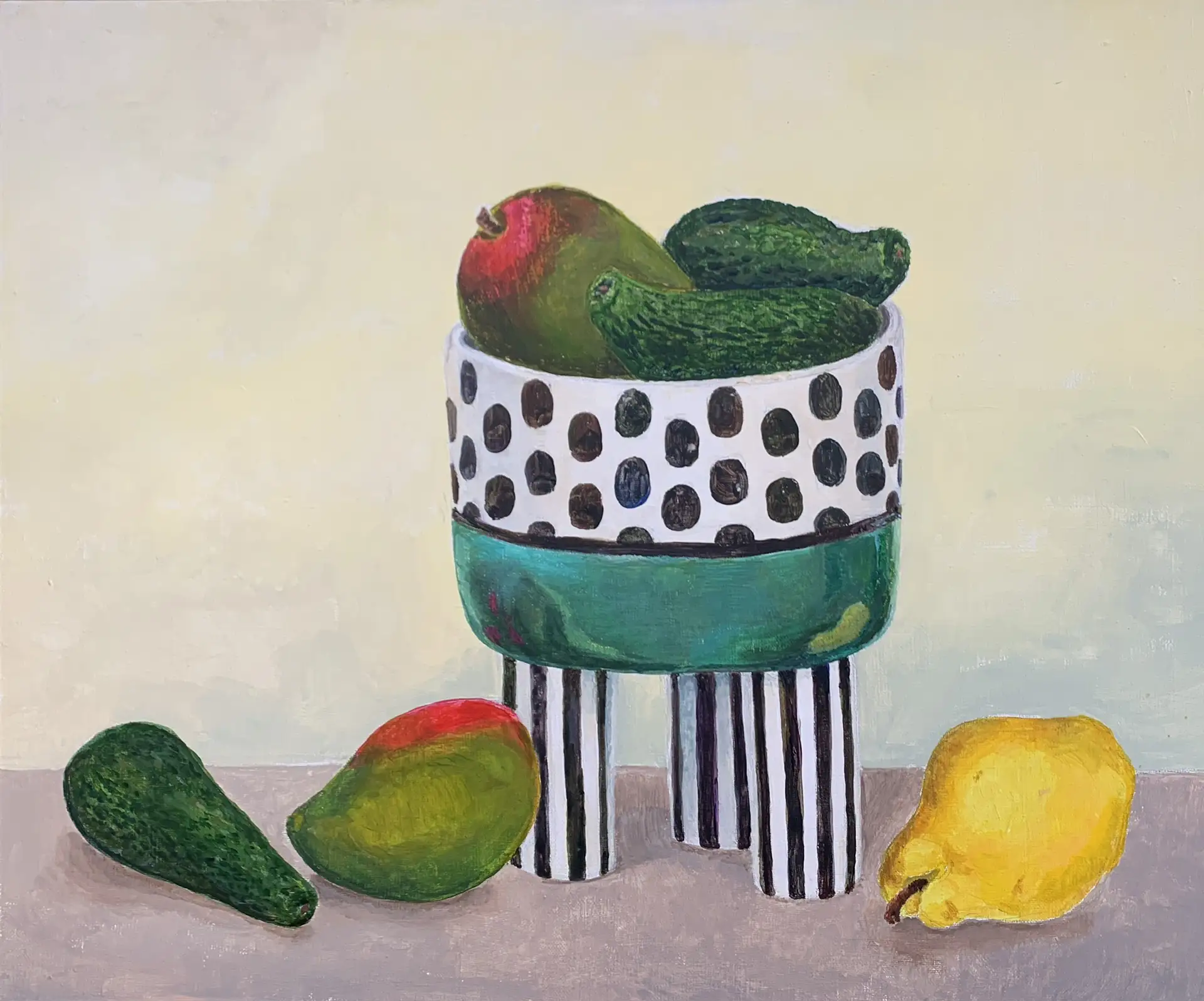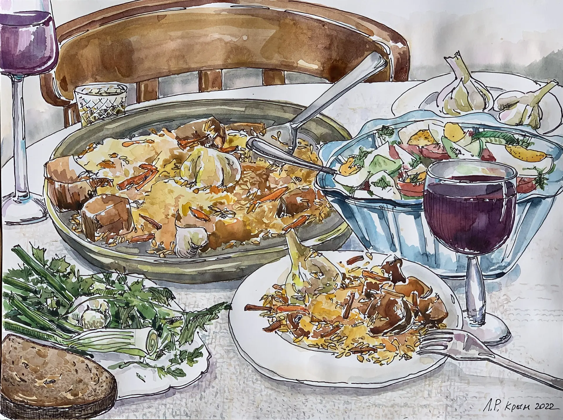 Натюрморты, выполненные в технике акриловой живописи, яркие и звучные, интересны по стилизации форм и пластике, наполнены внутренней динамикой. Цветочные акварели нежные и воздушные. Особое место в экспозиции отведено серии акварельной графики «Кушать подано», отличающейся интересными композиционными решениями и авторской смешанной техникой.